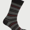 These mercerised cotton-rich socks are available in 10 colourways; Multicoloured Stripe, Teal Geometric, Teal Small Stripe, Teal Geometric, Navy Herringbone, Navy Polka Dot, Charcoal Irregular, Black Pinstripe, Plum Geometric, Charcoal Herringbone, and Black Polka Dot.
