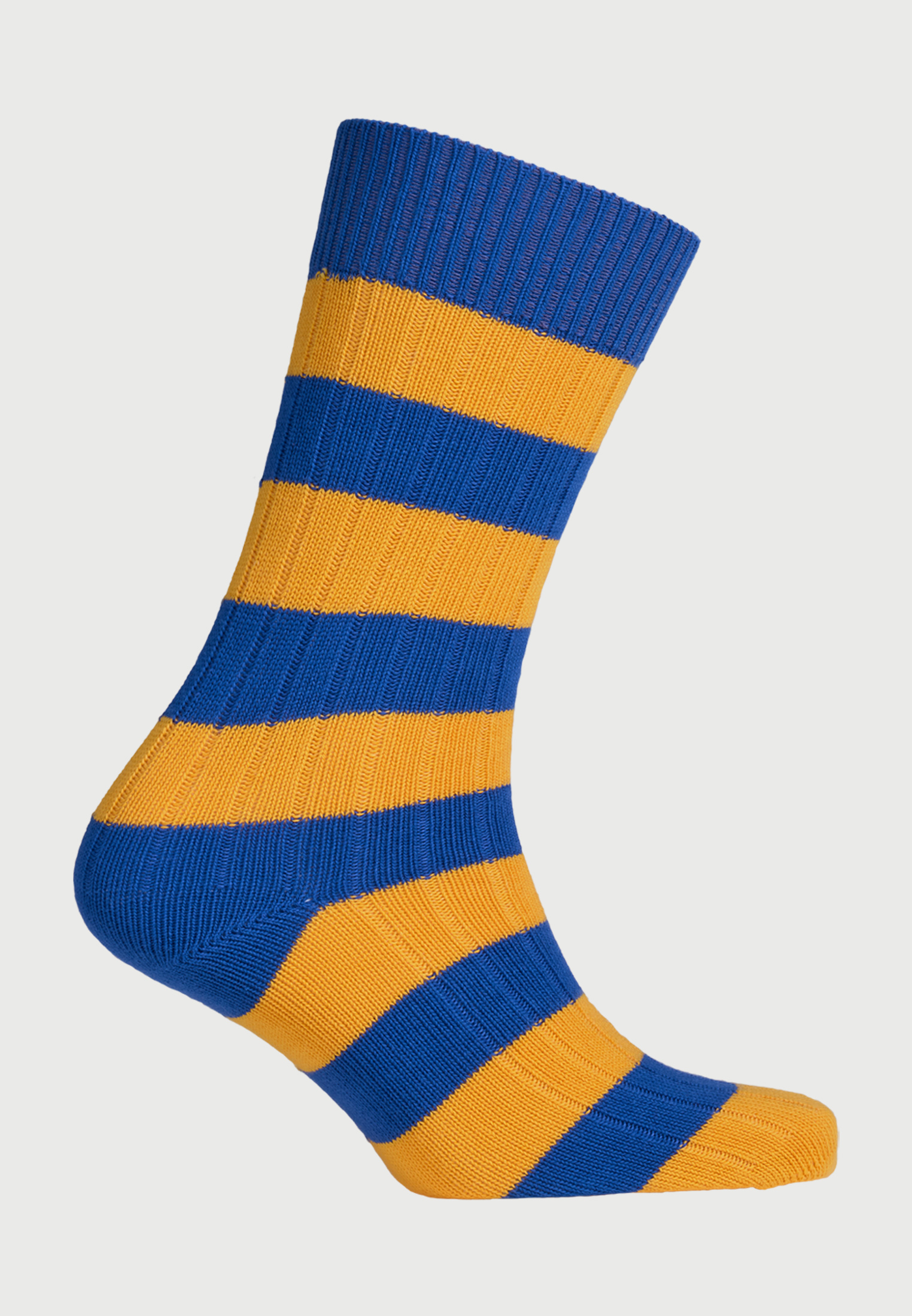 Cotton Rich Blue and Yellow Striped Socks