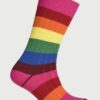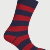 These rugby style socks are made from a cotton-rich blend fabric and are available in eight striped colourways: Multicoloured stripe; Navy and Green; Navy and Red; Red and Blue; Sky Blue and Navy; Navy and Pink; Blue and Yellow; Wine and Blue.