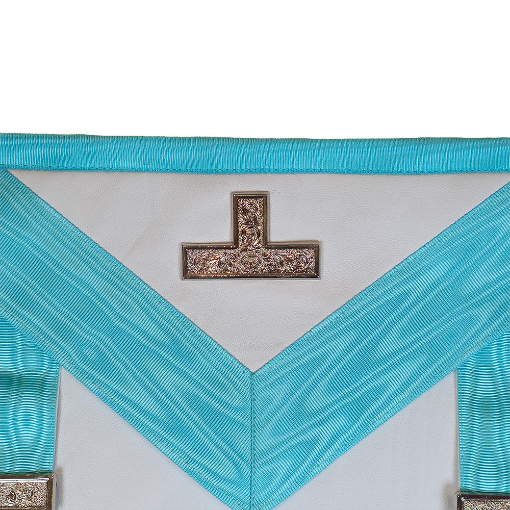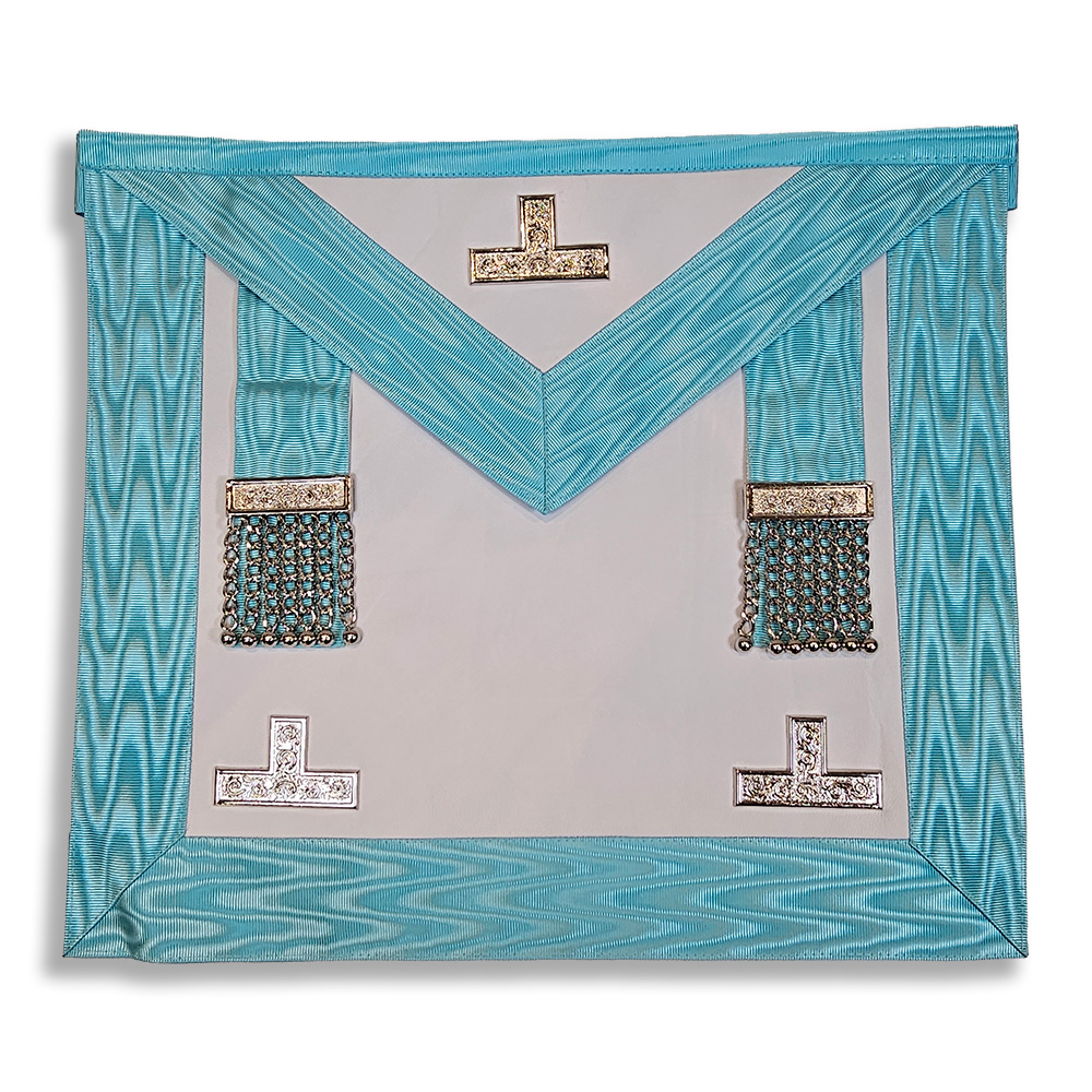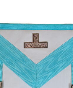 A Worshipful Master & Past Master’s apron. Imitation lambskin complete with pocket in reverse.