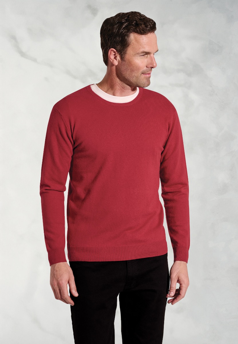 Knitwear: 12 gauge.Fully fashioned. Crew neck. Plain knit. Ribbed neck, hem and cuff. Machine washable.