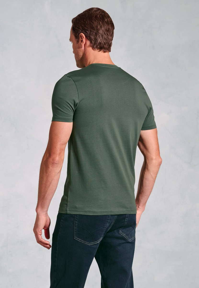 The Hawkes T-shirt is made from cotton and is available in six colours; White, Blue Marl, Silver Grey Marl, Coral, Khaki, and Dark Navy .