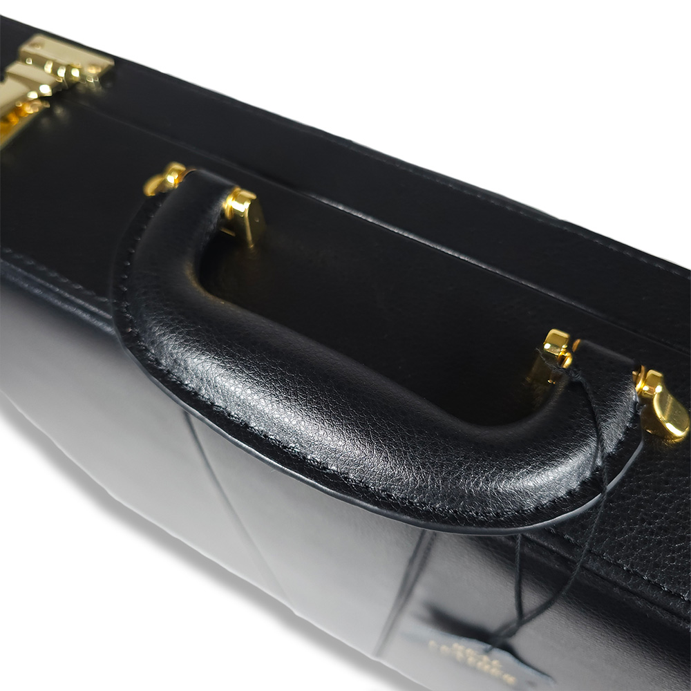 Will hold the apron and any collars flat with secure straps. There are storage pockets in the lid and combination locks.