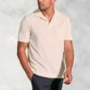 The Milton polo shirt is made from 80% cotton 20% polyester terry towelling fabric, and is available in five colours; Blue, Coral, Apple, Off White and Navy.