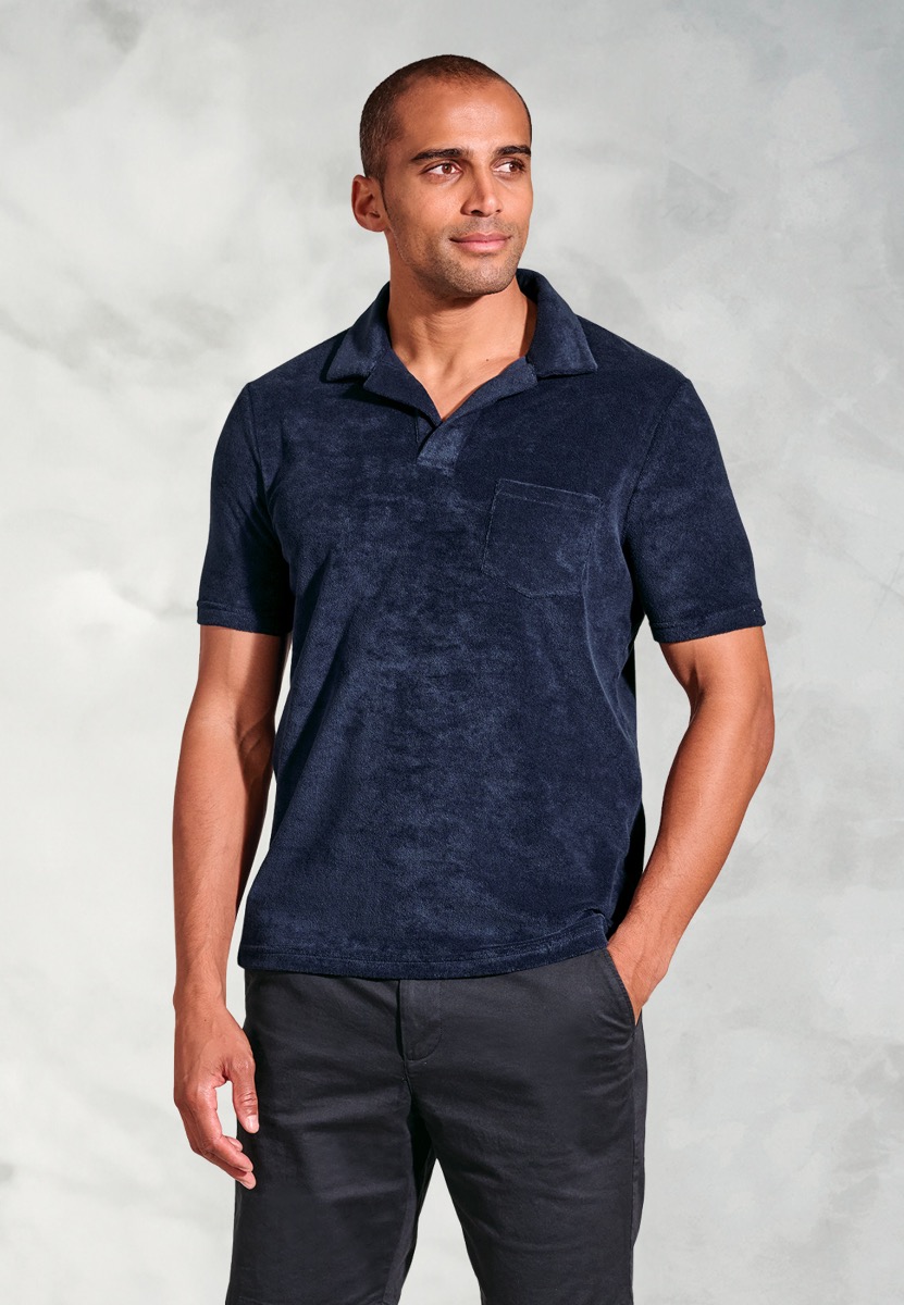 This easy to wear stylish and retro terry towelling polo shirt is the perfect retro addition to your wardrobe.