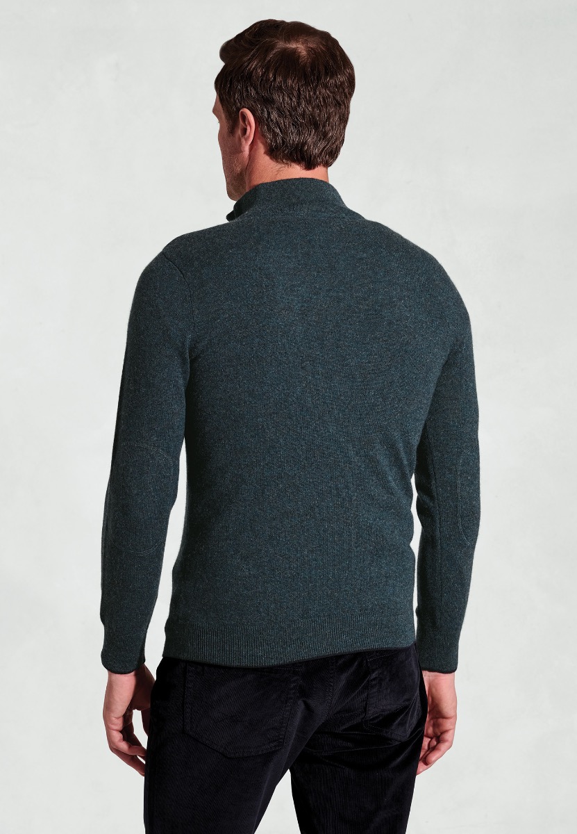 The Cashmere zip neck jumper is available in six colours; Petrol, Navy, Taupe, Charcoal, Shiraz and Burnt Orange.
