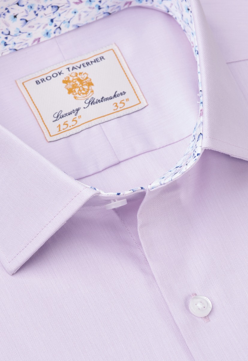 Shirt: Regular Fit. Standard collar. Removable branded metal collar bones. Patterned contrast trim inner collar and cuffs. Split yoke. Flat back. Long Sleeve. Twin button adjustable single cuff. Soft-touch easy-care finish.