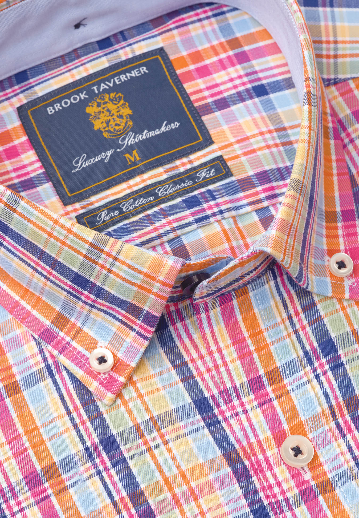 These 100% cotton shirts are a Regular fit and available in four colours: Navy and Multicolour Check; Navy and Multicolour Stripe; Multicolour Check; and White with Multicolour Stripe.