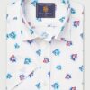 Regular Fit White Stretch Cotton Oxford Grandad Collar Shirt