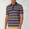 The Sandham polo shirt is made from a soft handle cotton pique, and is available in two colourways: White with Multi Colour Stripe, and Navy with Multi Colour Stripe.
