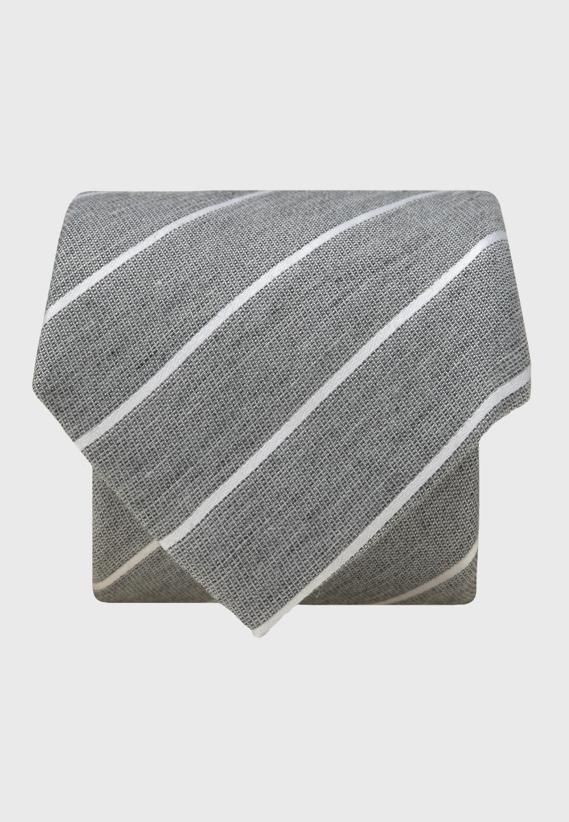Silver Grey Butchers Stripe Textured Silk Blend Tie