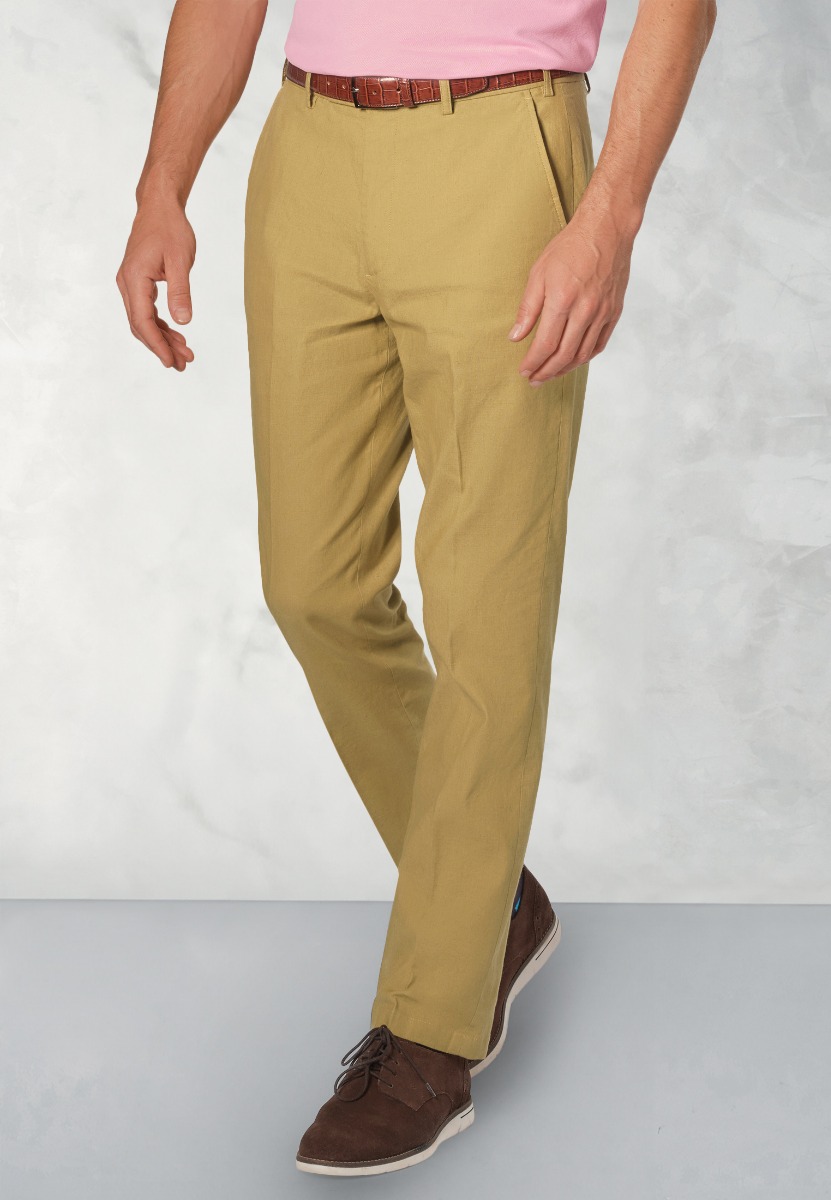 Made from a linen and cotton blend fabric these trousers are available in four colours; Navy, Stone Sand and Khaki.