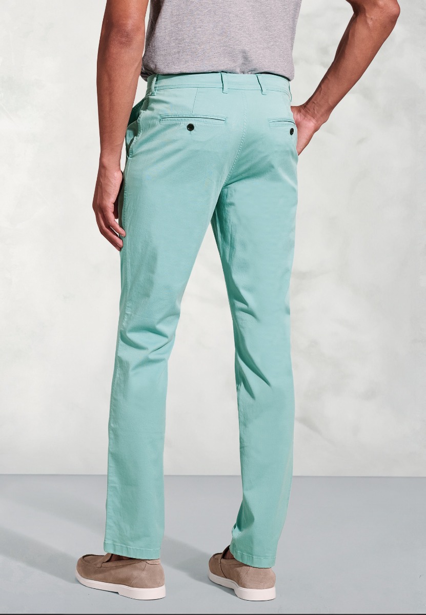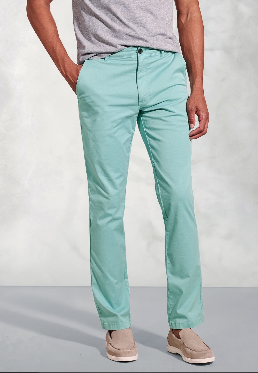The Broderick trousers are made in Tailored fit, from cotton stretch fabric in six colours; Pink, Blue, Coral, White, Aqua, and Navy.