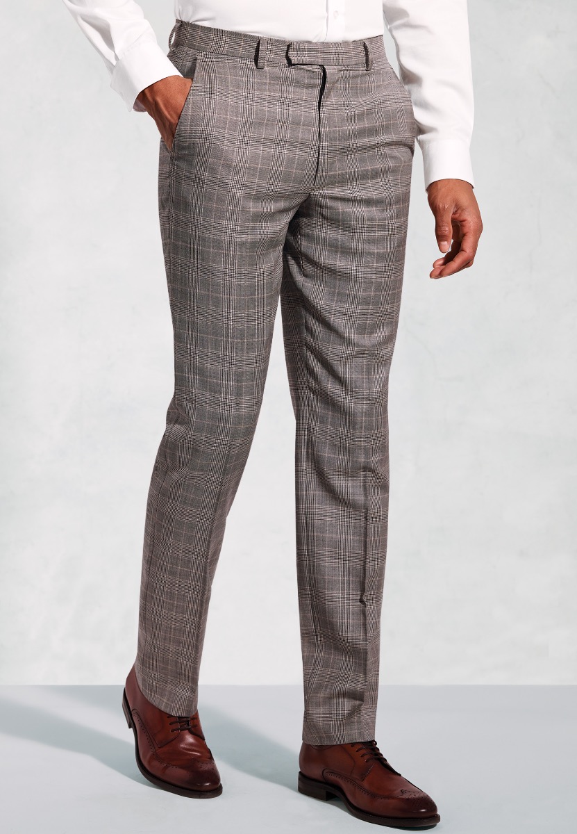 This modern take on a classic grey check suit offers a contemporary twist on a timeless style. The perfect blend of tradition and trend.