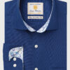 Shirt: Tailored fit. Standard collar. Removable metal branded collar bones. Contrast trim inner collar and cuff. Split yoke. Flat back. Long sleeve, in three lengths. Twin button adjustable single cuff with cufflink facility. Easy care. Machine washable.