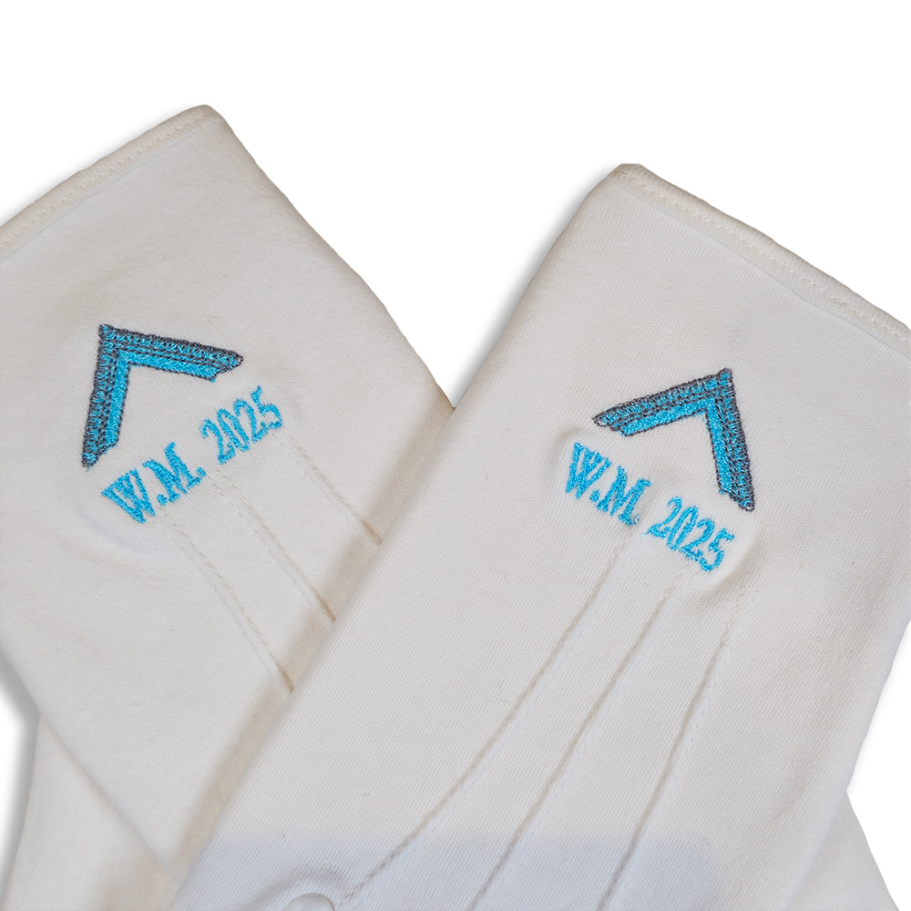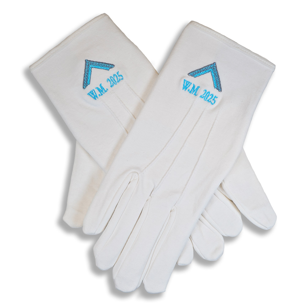 White Cotton Gloves with embroidered with Masters Square and Year.  Please State Size – available in Small, Medium, Large and Extra Large