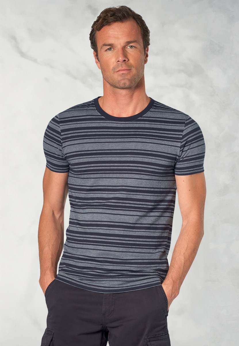 The Willis T-shirt is made from 100% cotton jersey and is available in four colours: Navy with White Herringbone Hoop; White with Navy Herringbone Hoop; White with Peach Herringbone Hoop; and Apple with White Herringbone Hoop.